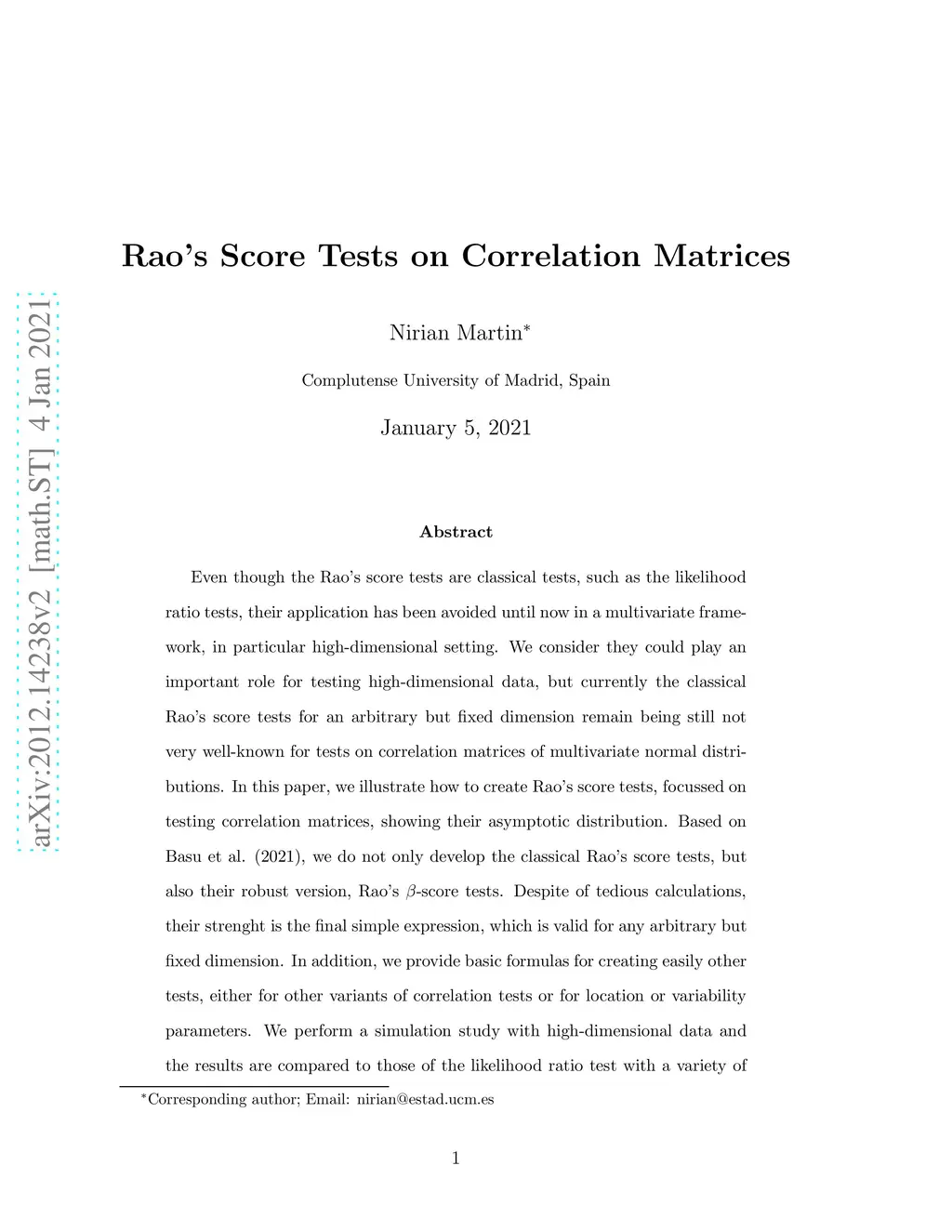 Rao's Score Tests on Correlation Matrices