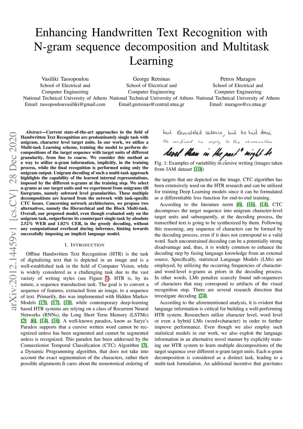 Enhancing Handwritten Text Recognition with N-gram sequence