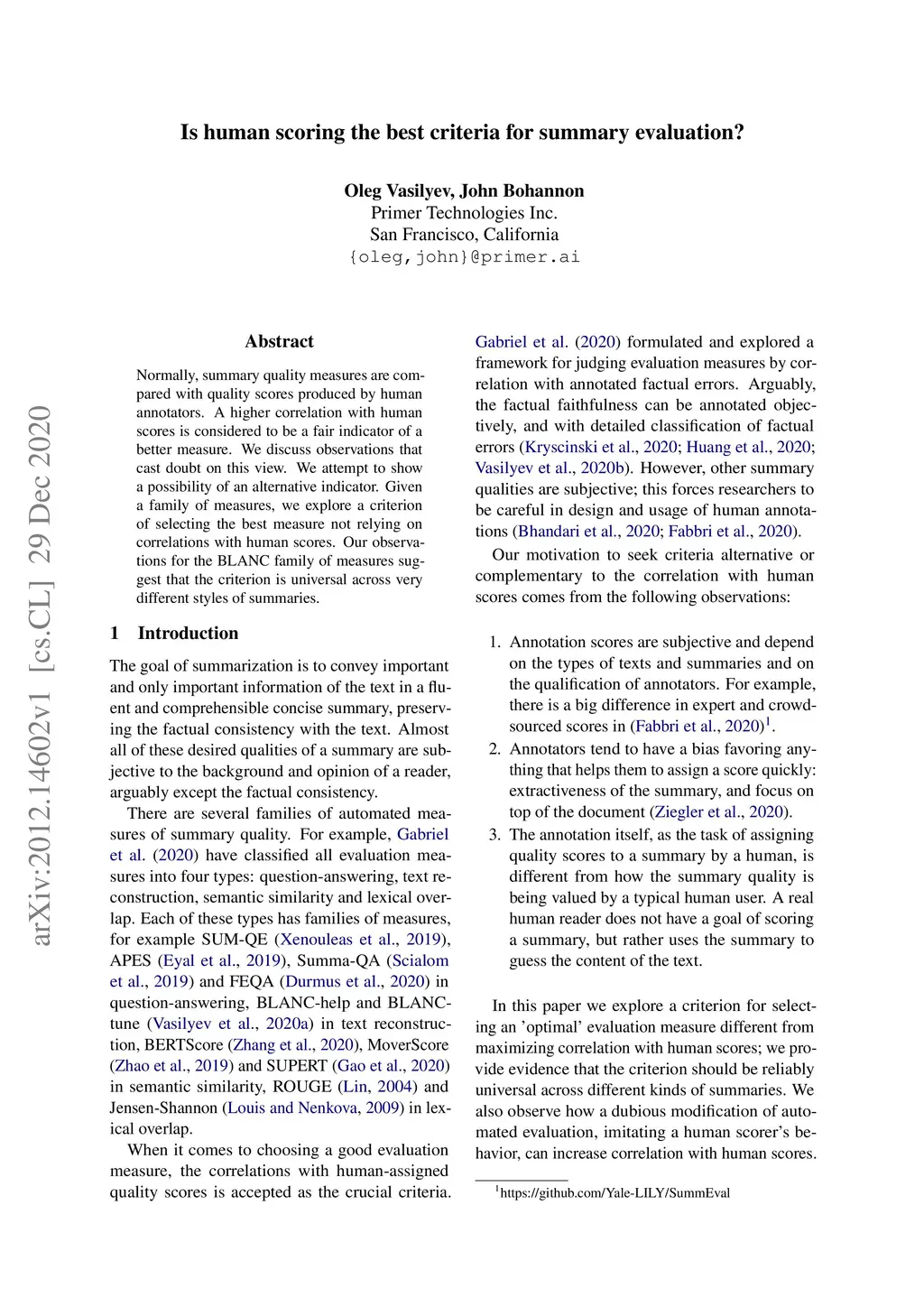 Is human scoring the best criteria for summary evaluation?