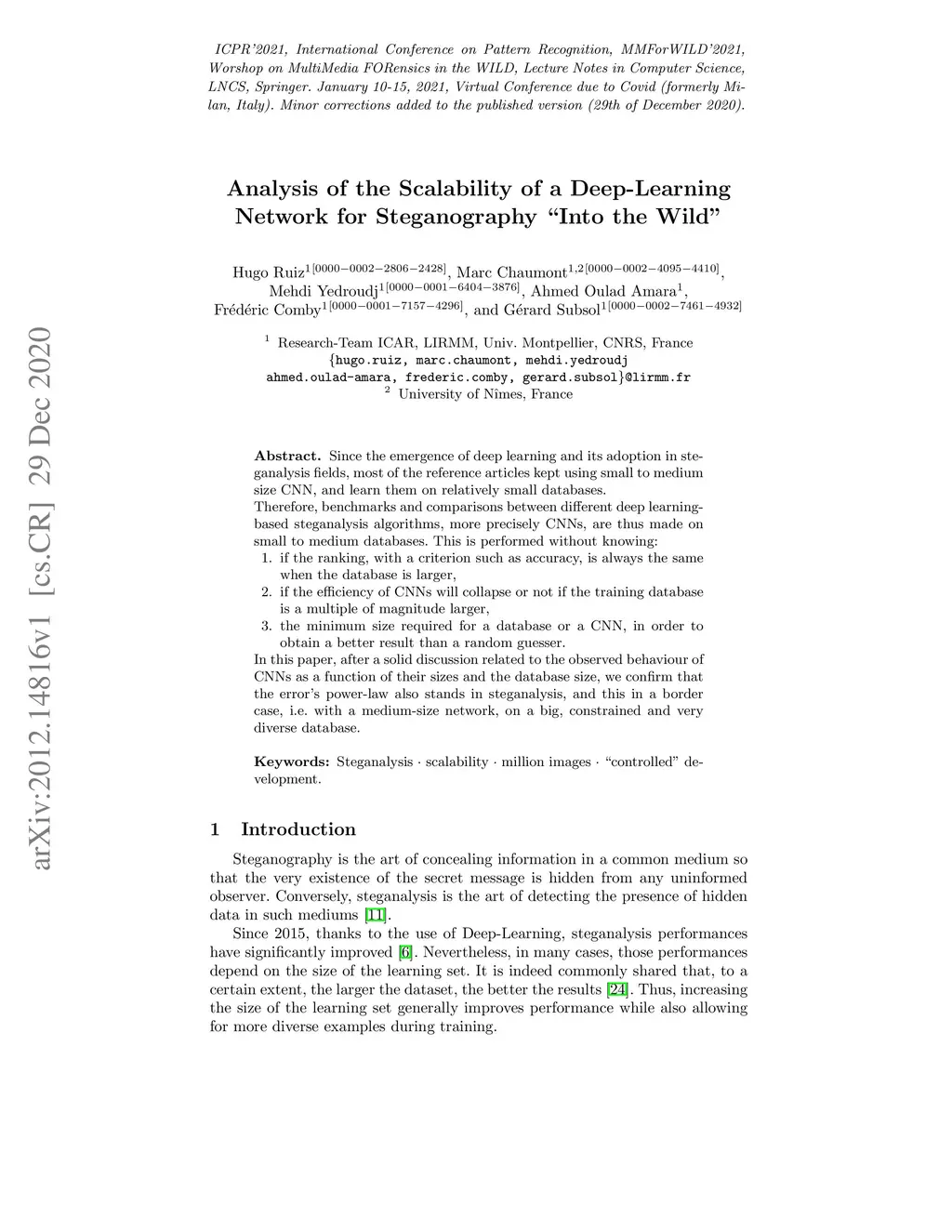 Analysis of the Scalability of a Deep-Learning Network for Steganography