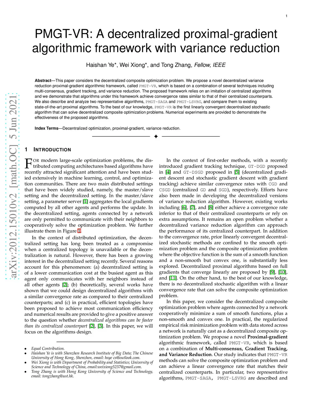PMGT-VR: A decentralized proximal-gradient algorithmic framework with