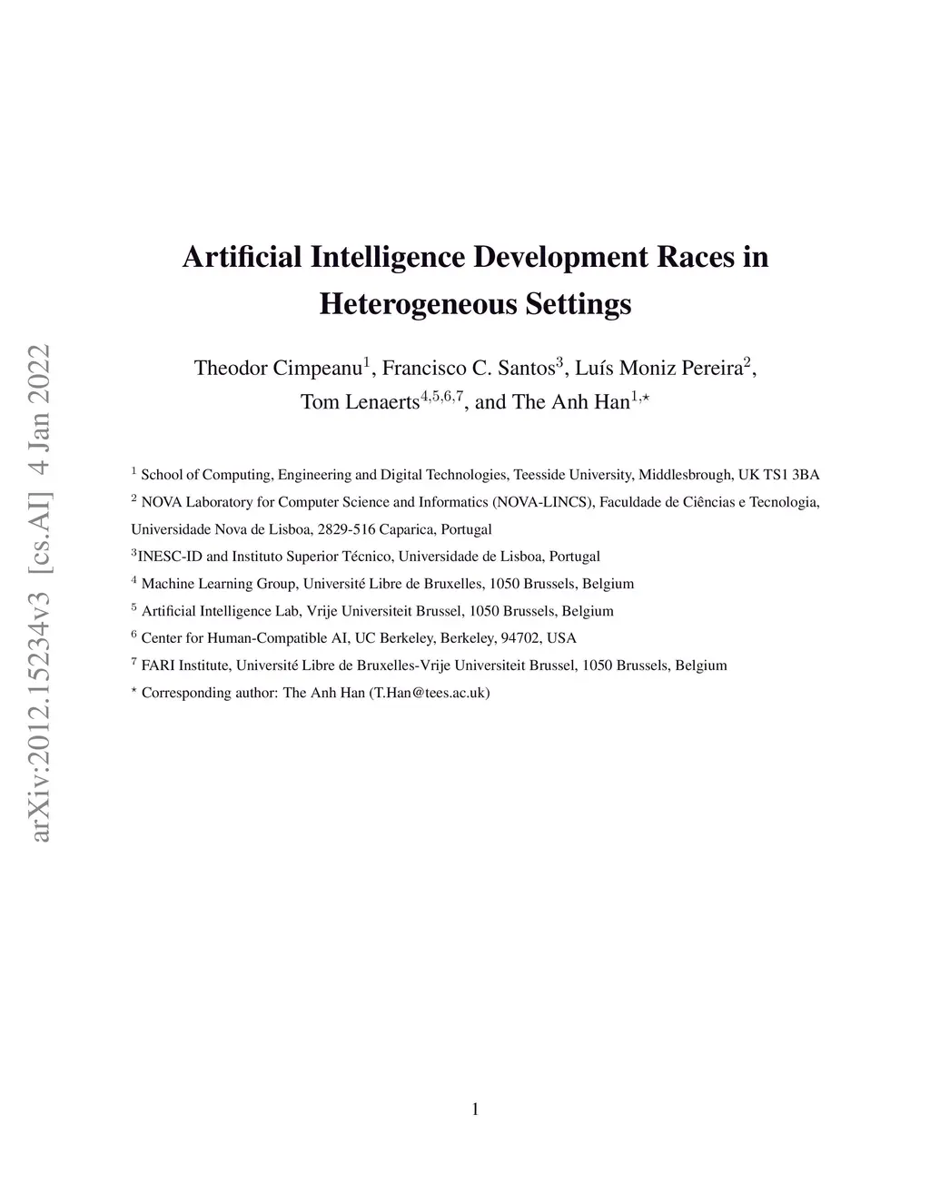 Artificial Intelligence Development Races in Heterogeneous Settings