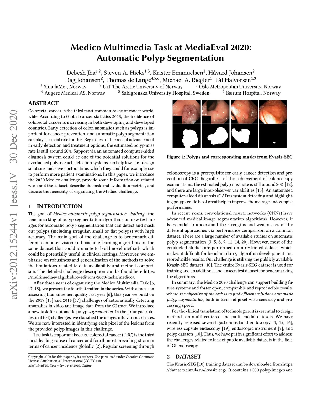 Medico Multimedia Task at MediaEval 2020: Automatic Polyp Segmentation