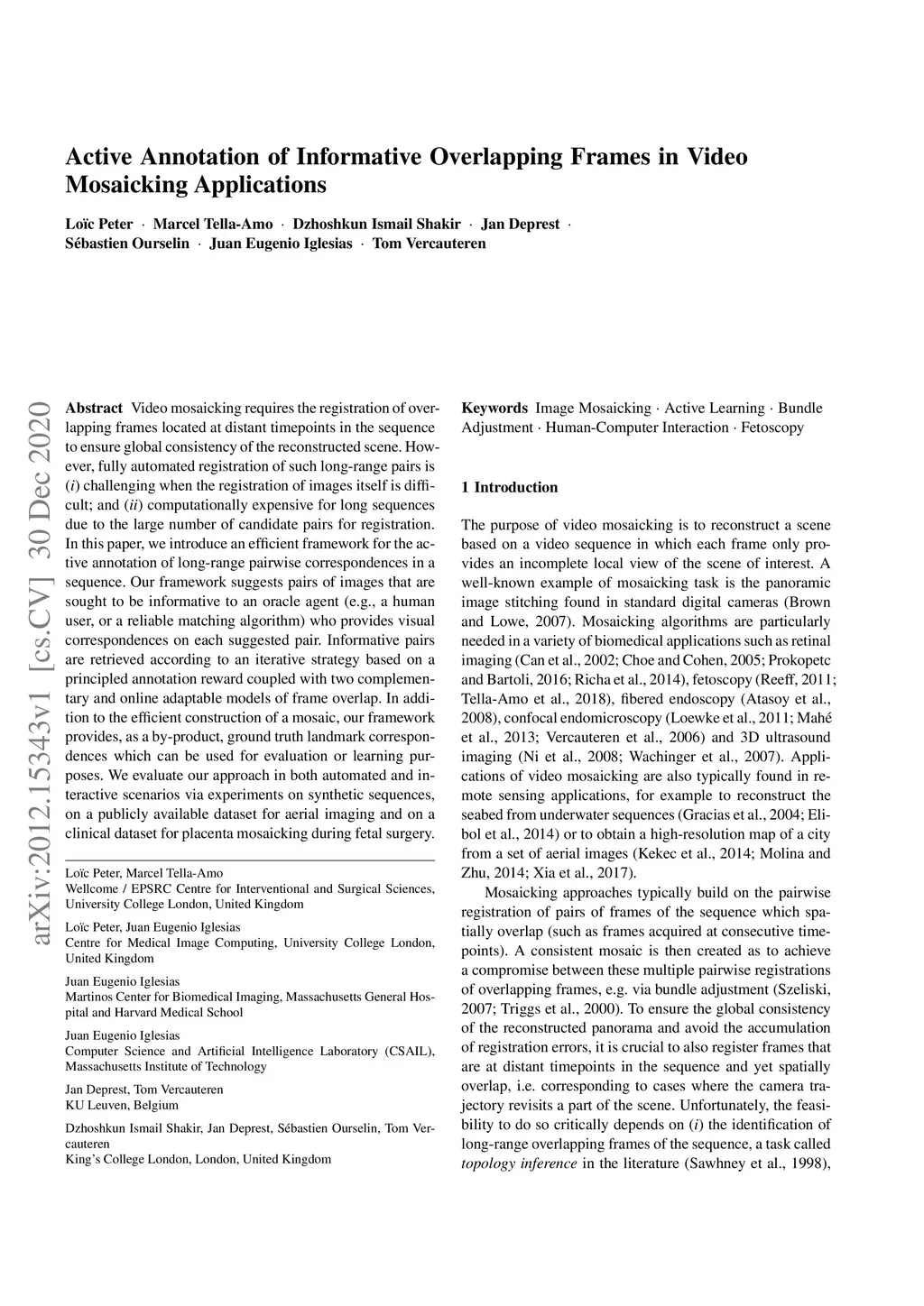 Active Annotation of Informative Overlapping Frames in Video Mosaicking