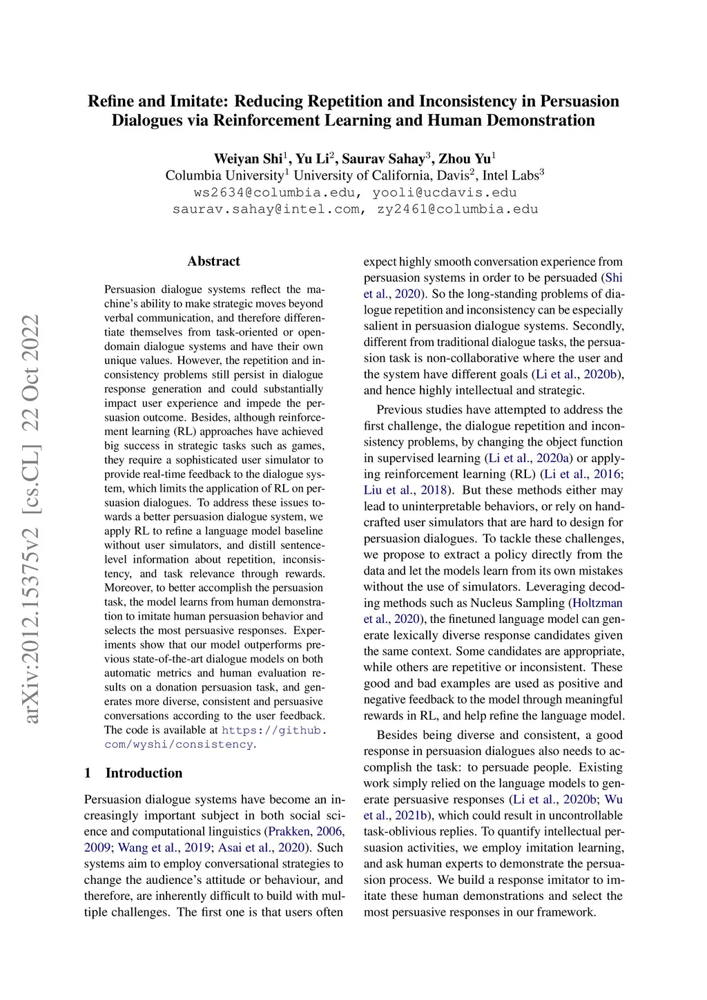 Refine and Imitate: Reducing Repetition and Inconsistency in Persuasion