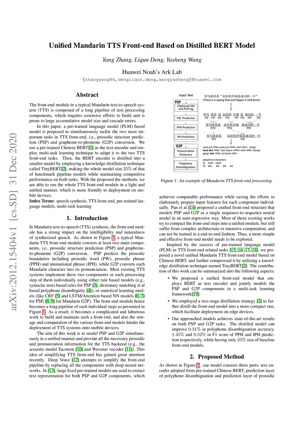Unified Mandarin TTS Front-end Based on Distilled BERT Model