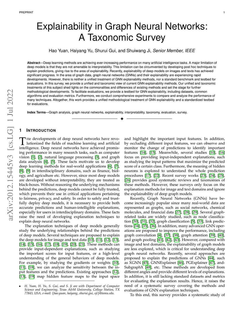 Deep learning methods are achieving ever-increasing performance on many artificial intelligence tasks. A major limitation of deep models is that they are not amenable to interpretability. This limitation can be circumvented by developing post hoc techniques to explain the predictions, giving rise to the area of explainability. Recently, explainability of deep models on images and texts has achieved significant progress. In the area of graph data, graph neural networks (GNNs) and their explainability are experiencing rapid developments. However, there is neither a unified treatment of GNN explainability methods, nor a standard benchmark and testbed for evaluations. In this survey, we provide a unified and taxonomic view of current GNN explainability methods. Our unified and taxonomic treatments of this subject shed lights on the commonalities and differences of existing methods and set the stage for further methodological developments. To facilitate evaluations, we generate a set of benchmark graph datasets specifically for GNN explainability. We summarize current datasets and metrics for evaluating GNN explainability. Altogether, this work provides a unified methodological treatment of GNN explainability and a standardized testbed for evaluations.