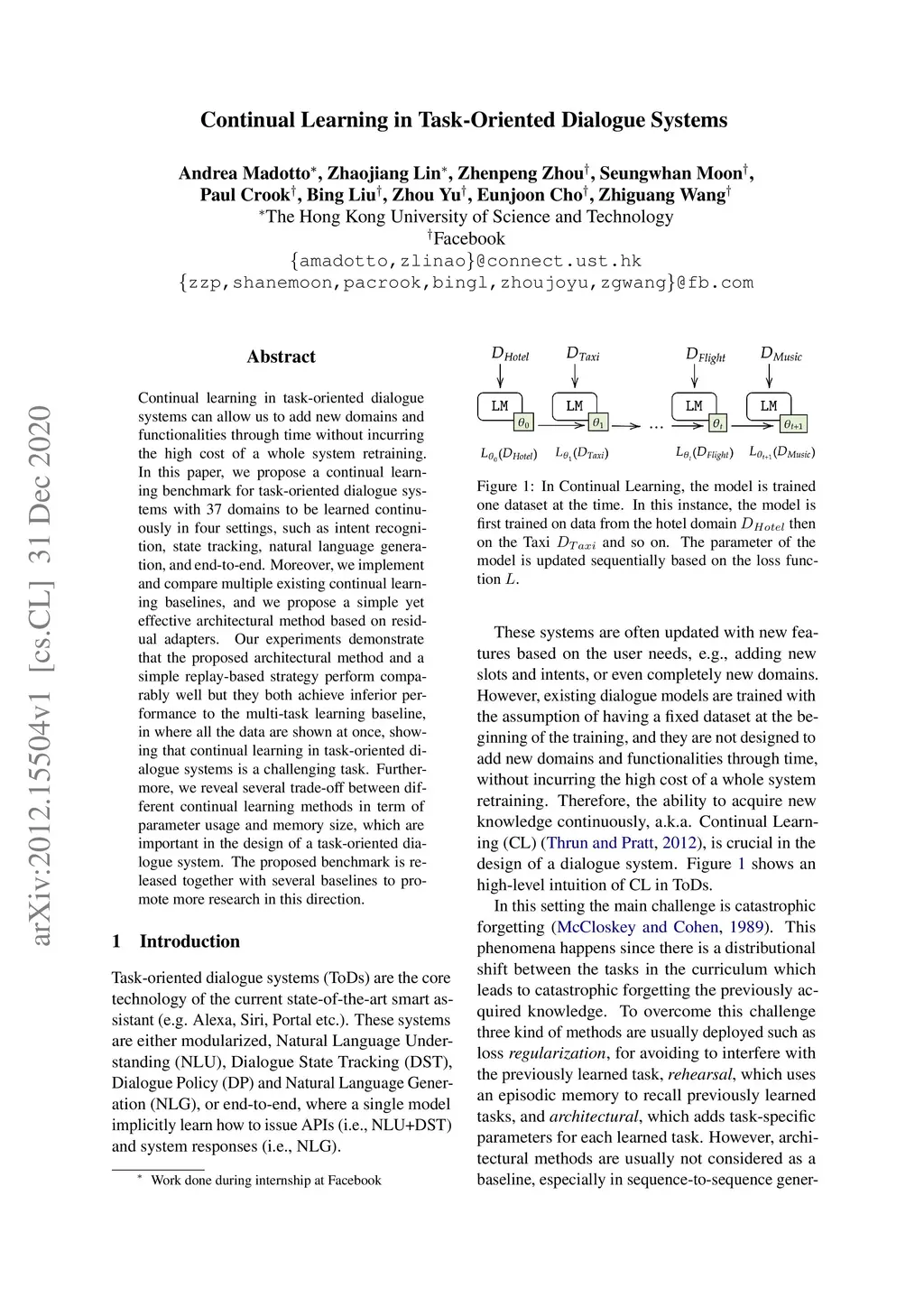 Continual Learning in Task-Oriented Dialogue Systems