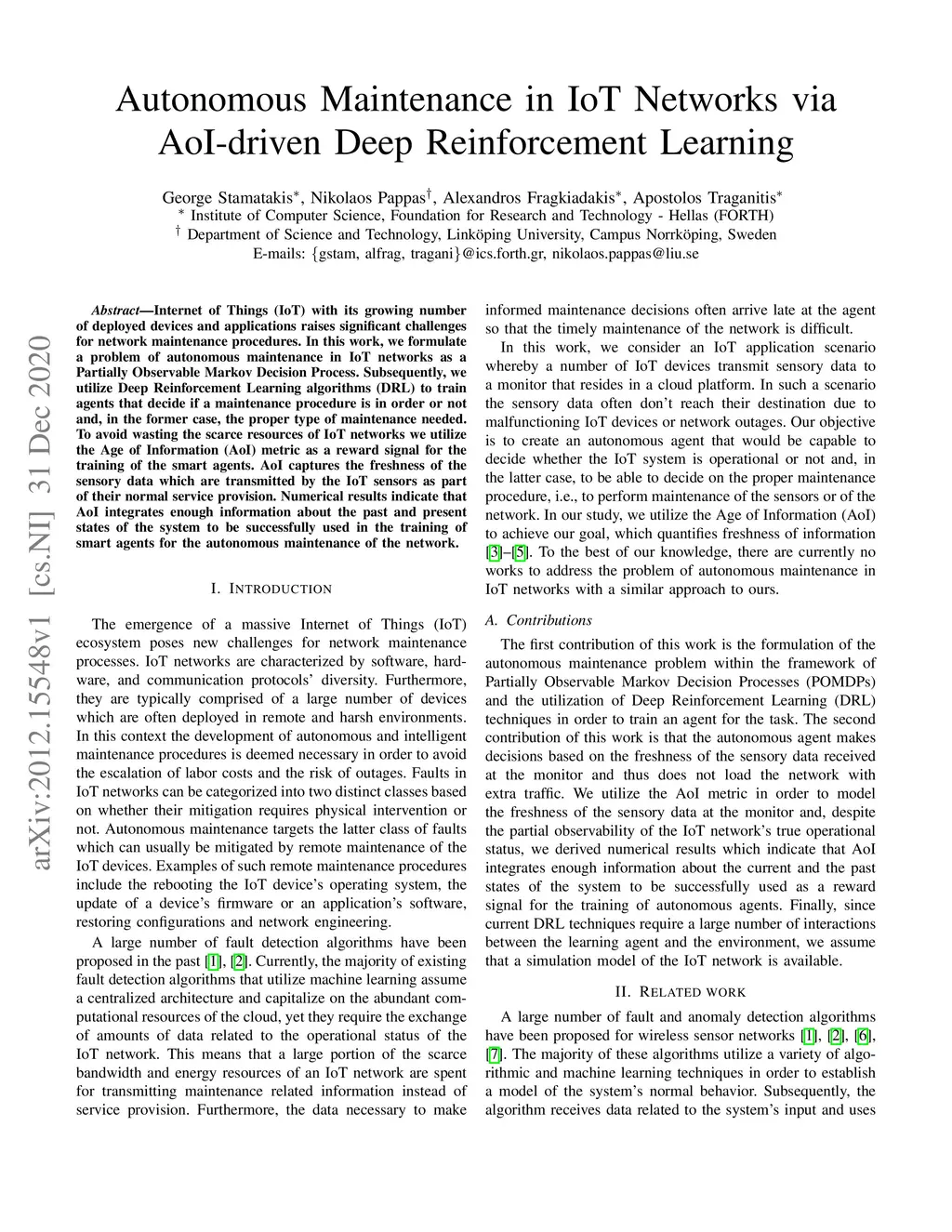 Autonomous Maintenance in IoT Networks via AoI-driven Deep Reinforcement