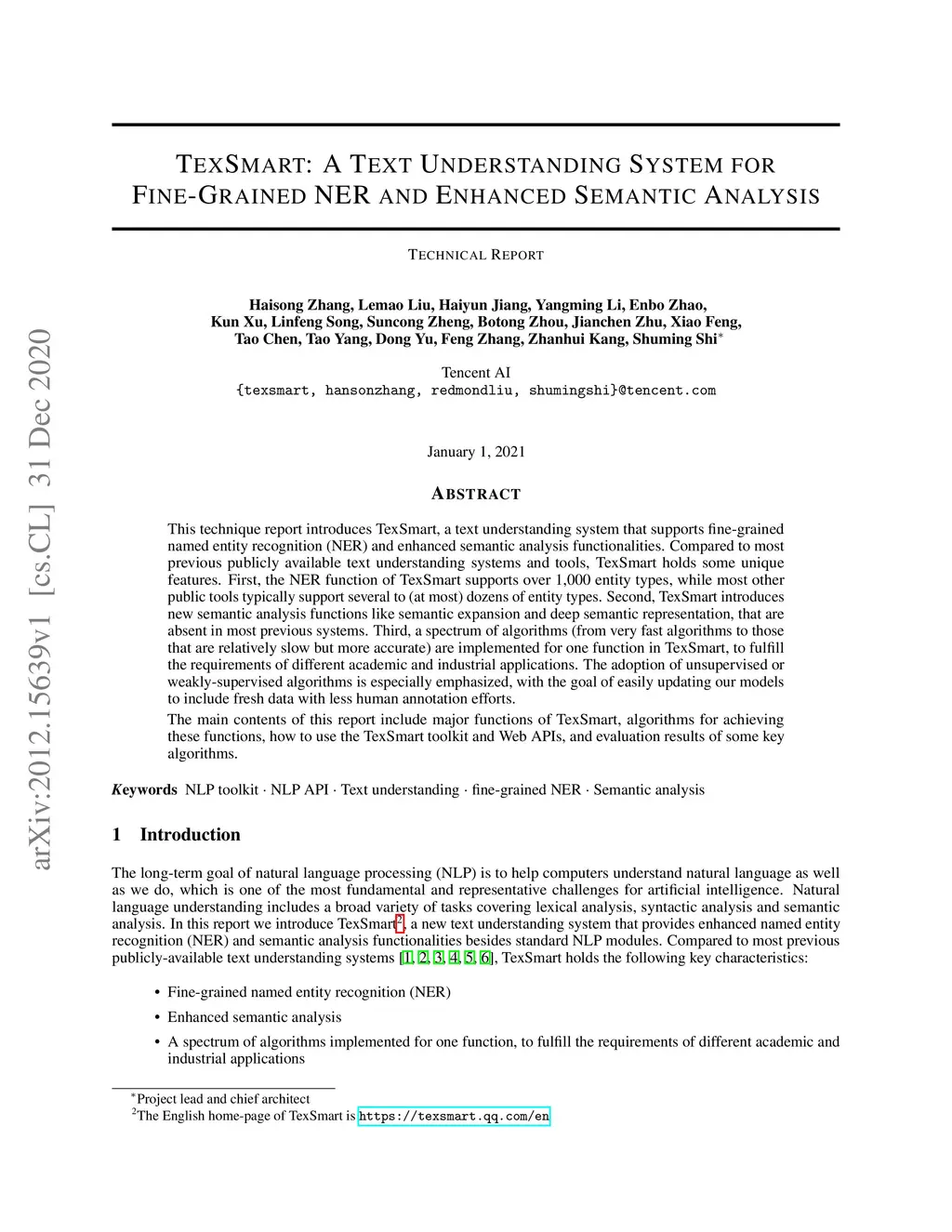 TexSmart: A Text Understanding System for Fine-Grained NER and Enhanced