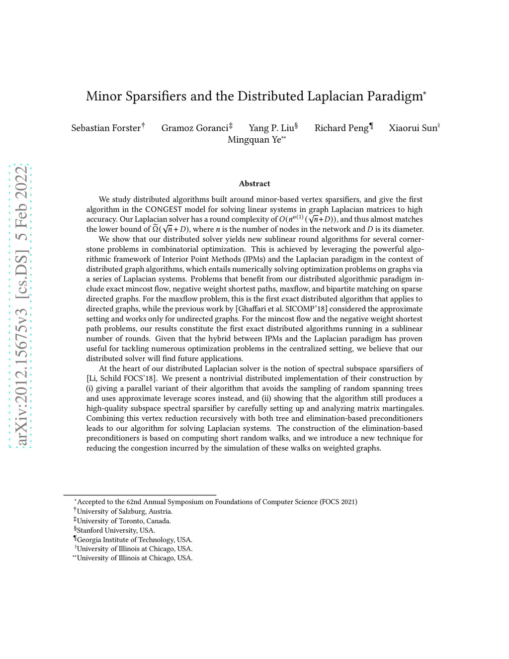 Minor Sparsifiers and the Distributed Laplacian Paradigm