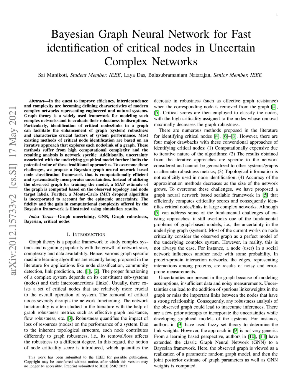 Bayesian Graph Neural Network for Fast identification of critical nodes