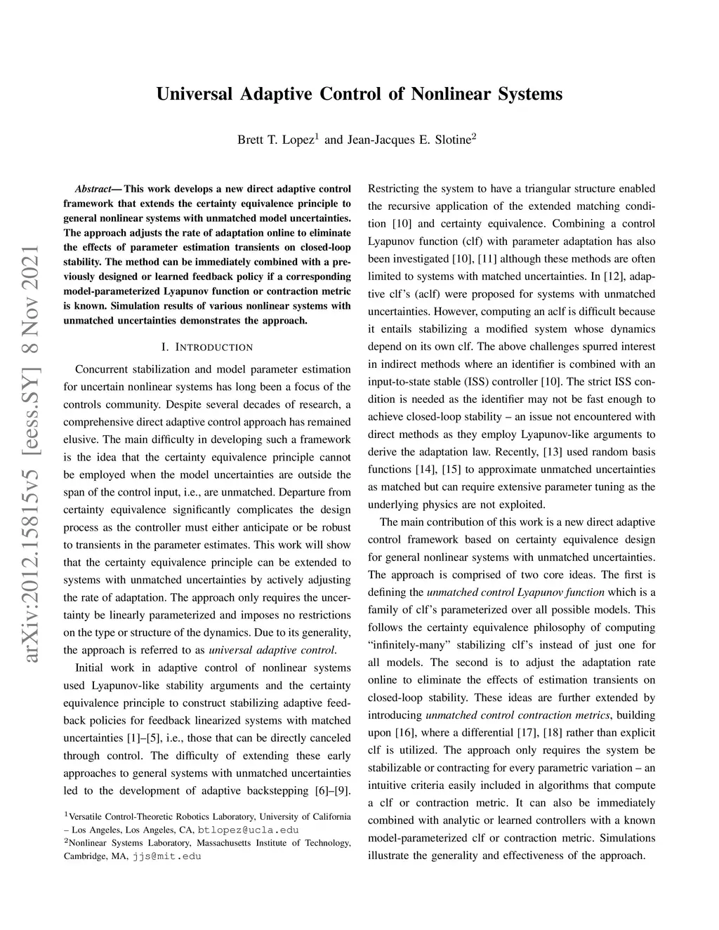 IEEE Control Systems Letters (L-CSS), 2020