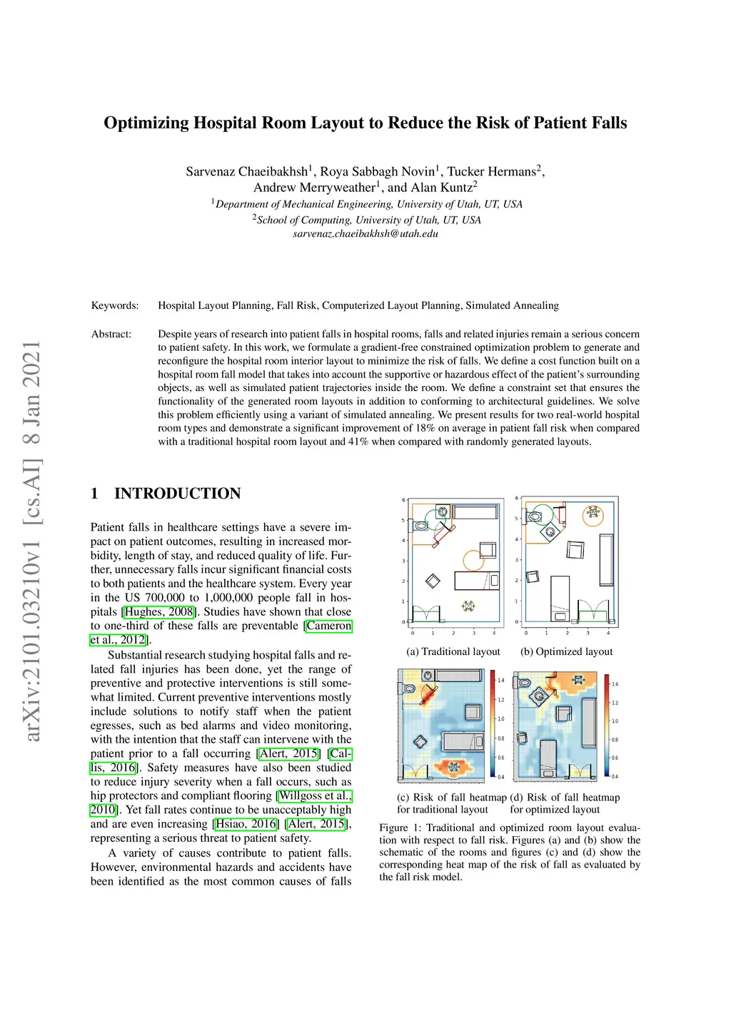 Optimizing Hospital Room Layout to Reduce the Risk of Patient Falls