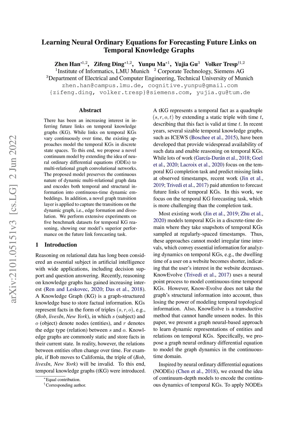 Temporal Knowledge Graph Forecasting with Neural ODE