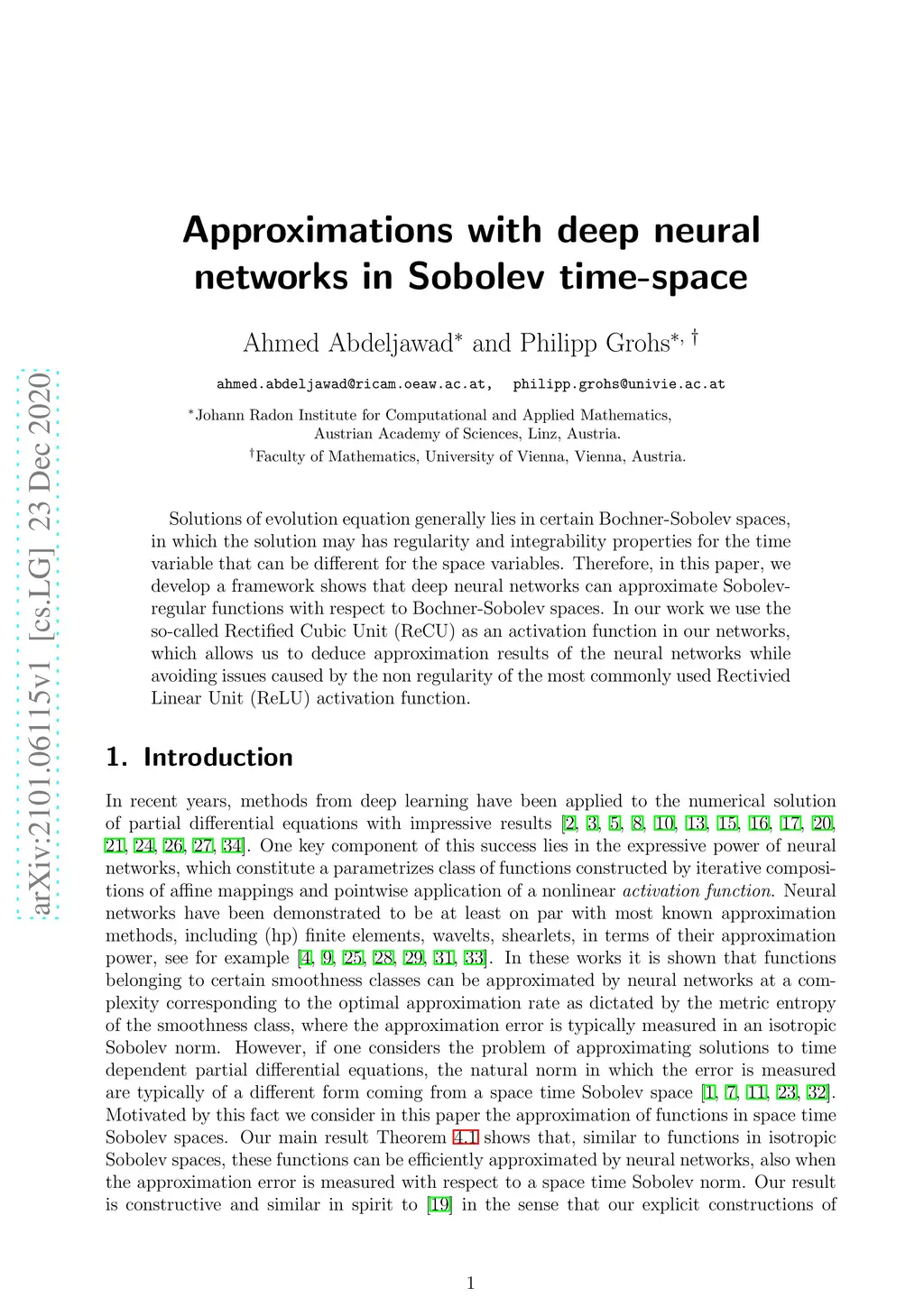 Solutions of evolution equation generally lies in certain Bochner-Sobolev spaces, in which the solution may has regularity and integrability properties for the time variable that can be different for the space variables. Therefore, in this paper, we develop a framework shows that deep neural networks can approximate Sobolev-regular functions with respect to Bochner-Sobolev spaces. In our work we use the so-called Rectified Cubic Unit (ReCU) as an activation function in our networks, which allows us to deduce approximation results of the neural networks while avoiding issues caused by the non regularity of the most commonly used Rectivied Linear Unit (ReLU) activation function.