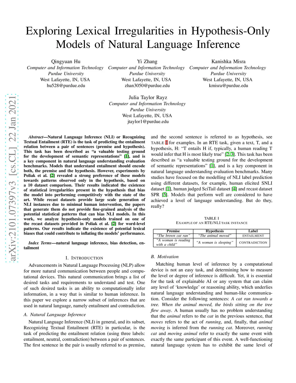 Exploring Lexical Irregularities in Hypothesis-Only Models of Natural