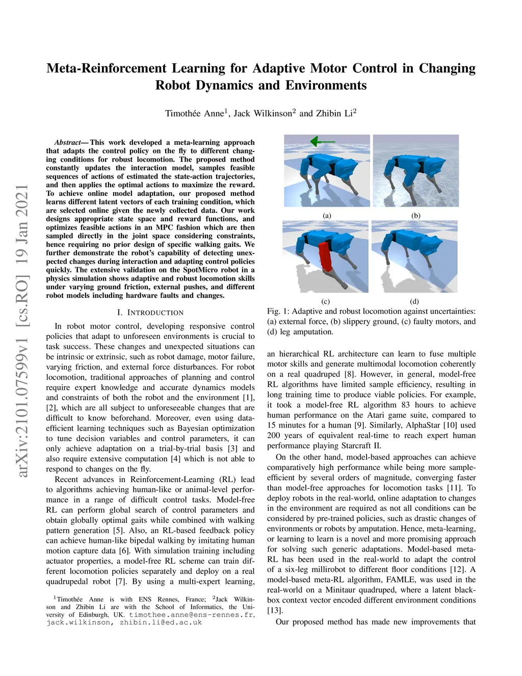Meta-Reinforcement Learning for Adaptive Motor Control in Changing Robot