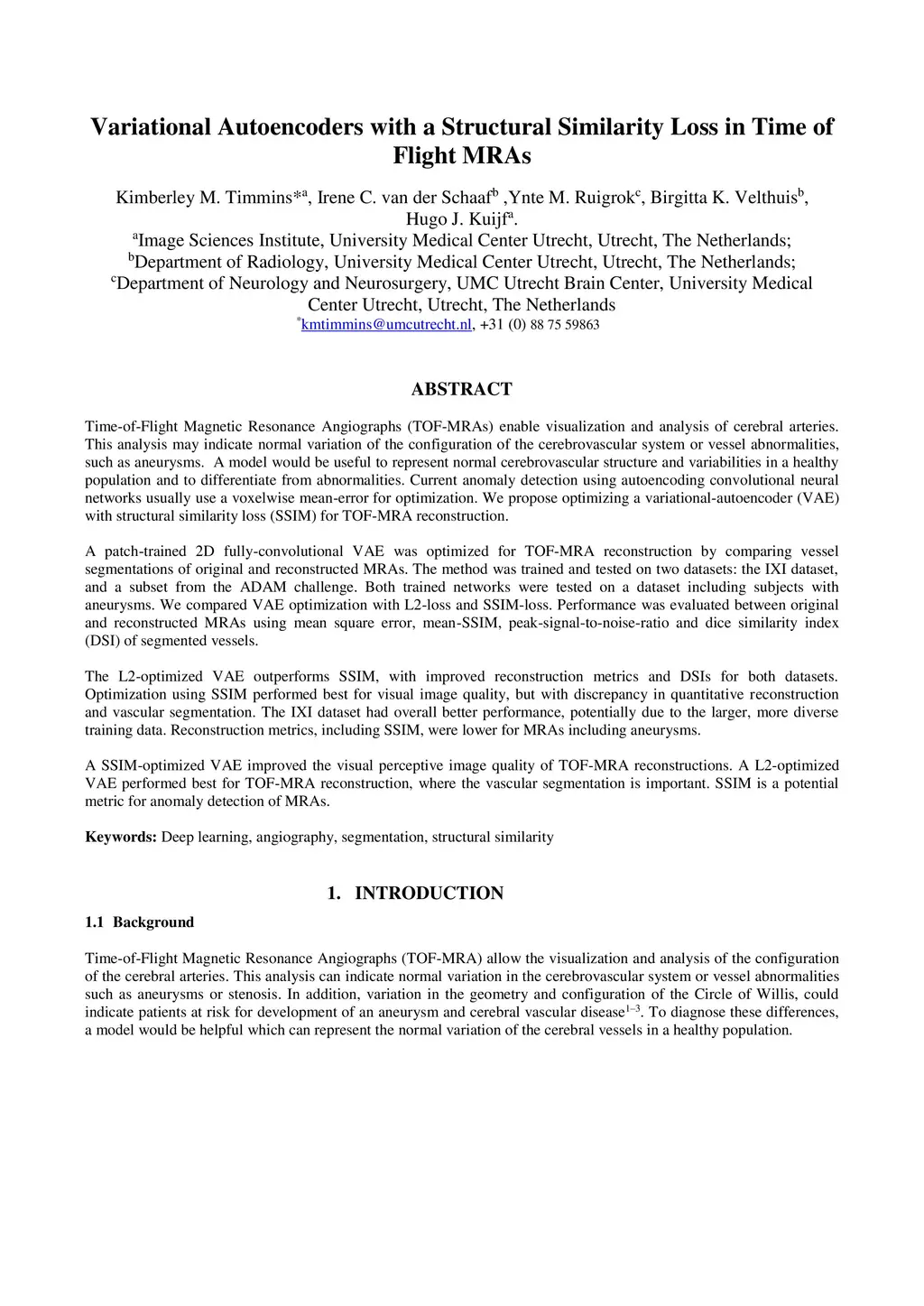 Variational Autoencoders with a Structural Similarity Loss in Time of