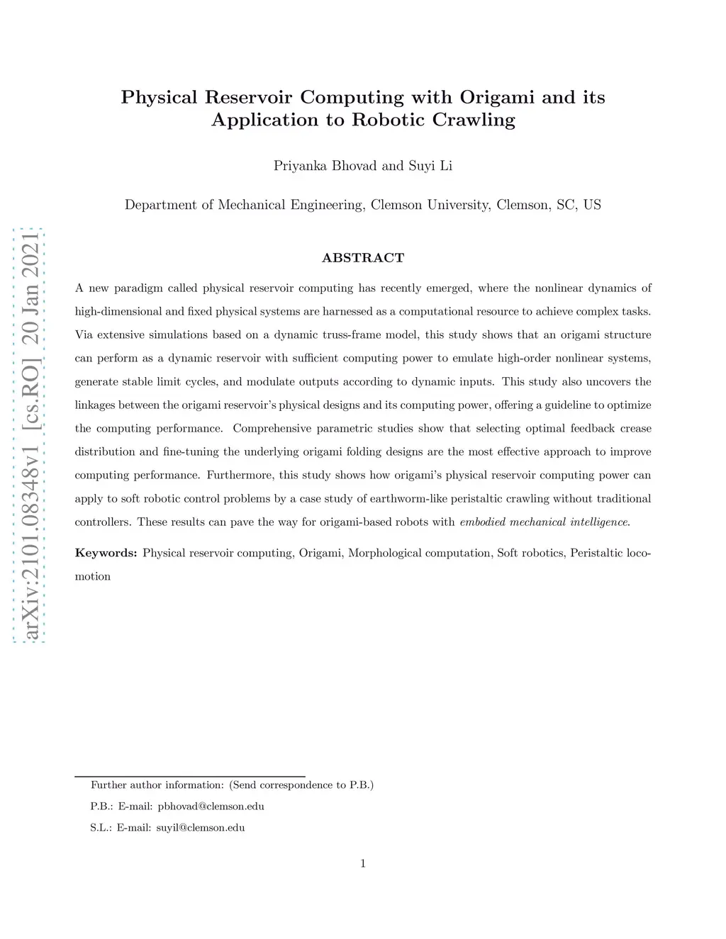 Physical Reservoir Computing with Origami and its Application to Robotic