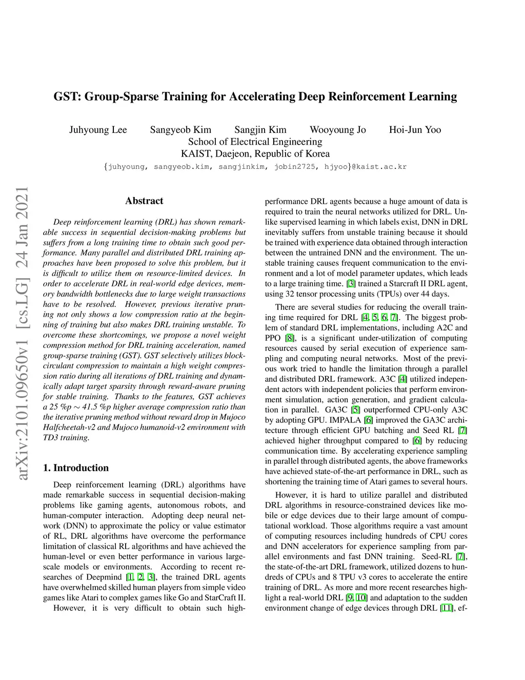 GST: Group-Sparse Training for Accelerating Deep Reinforcement Learning