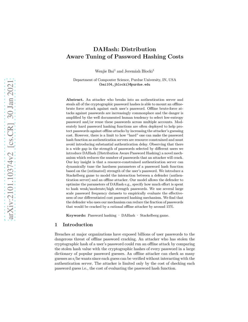 DAHash: Distribution Aware Tuning of Password Hashing Costs