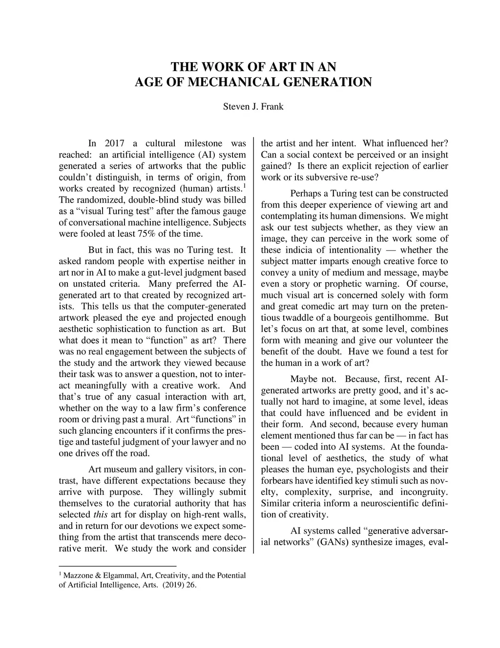 The Work of Art in an Age of Mechanical Generation