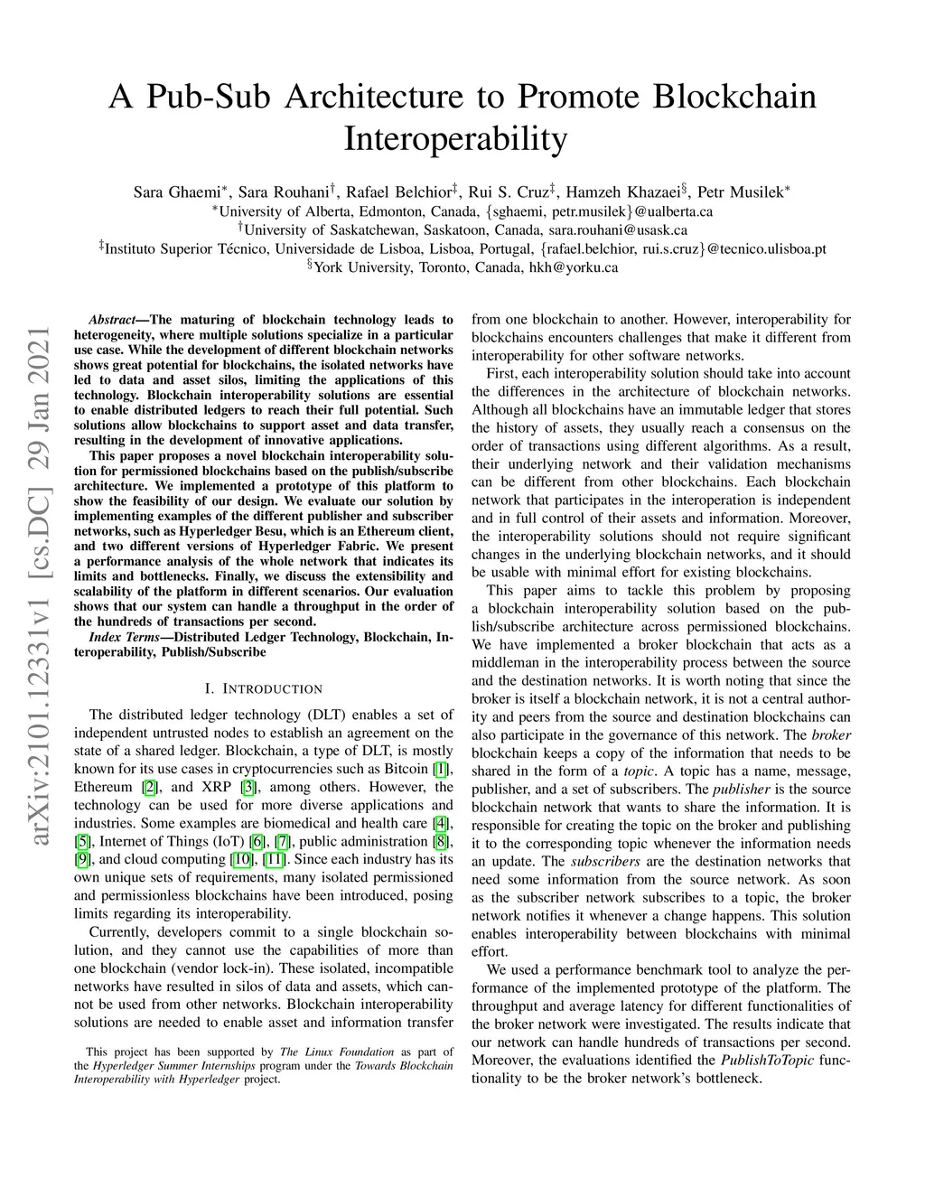 A Pub-Sub Architecture to Promote Blockchain Interoperability