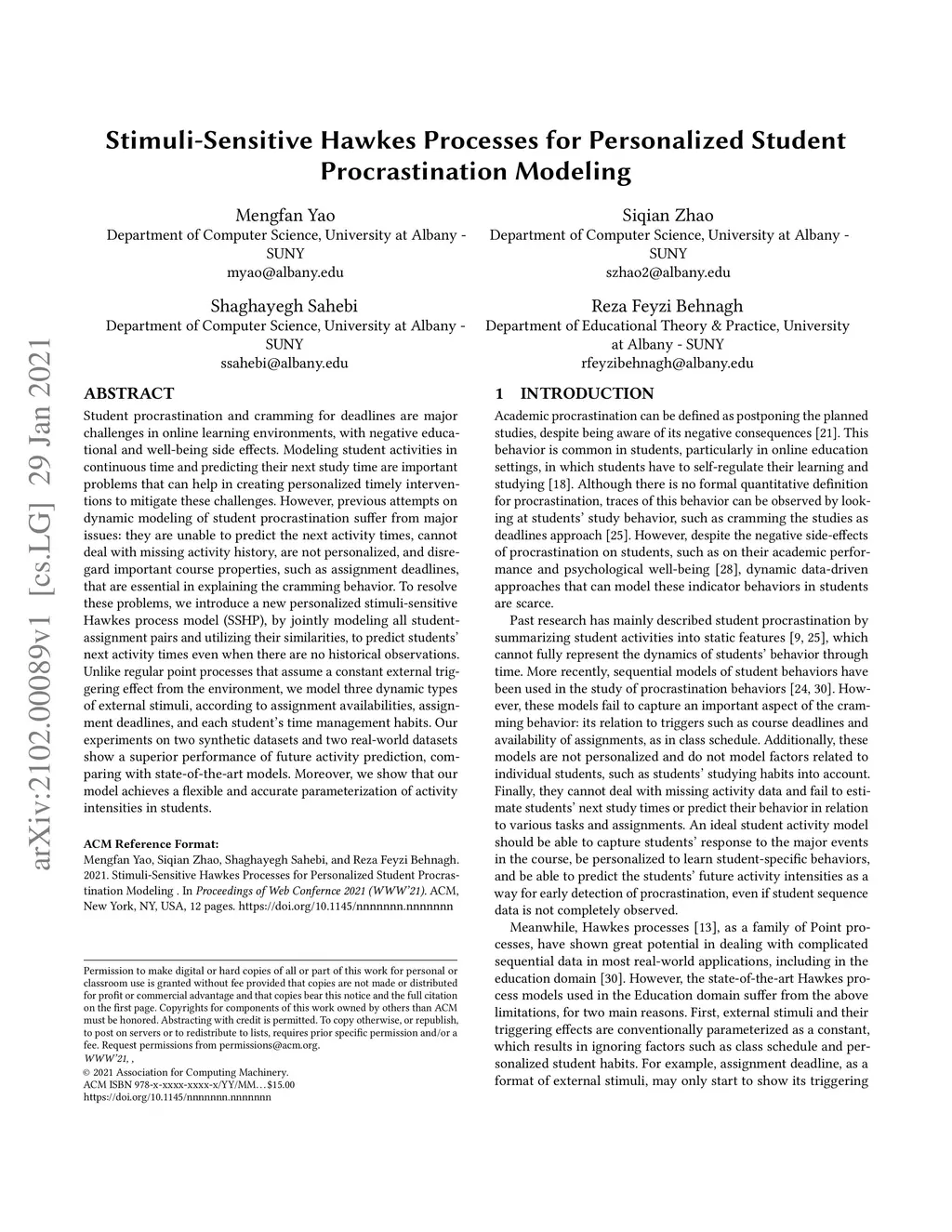 Stimuli-Sensitive Hawkes Processes for Personalized Student