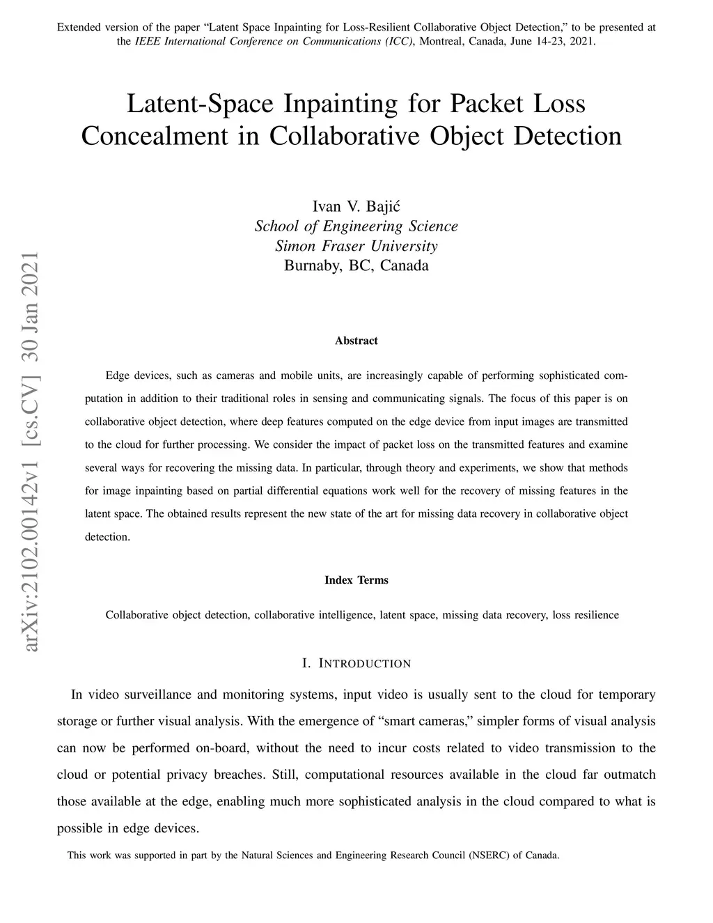 Edge devices, such as cameras and mobile units, are increasingly capable of performing sophisticated computation in addition to their traditional roles in sensing and communicating signals. The focus of this paper is on collaborative object detection, where deep features computed on the edge device from input images are transmitted to the cloud for further processing. We consider the impact of packet loss on the transmitted features and examine several ways for recovering the missing data. In particular, through theory and experiments, we show that methods for image inpainting based on partial differential equations work well for the recovery of missing features in the latent space. The obtained results represent the new state of the art for missing data recovery in collaborative object detection.