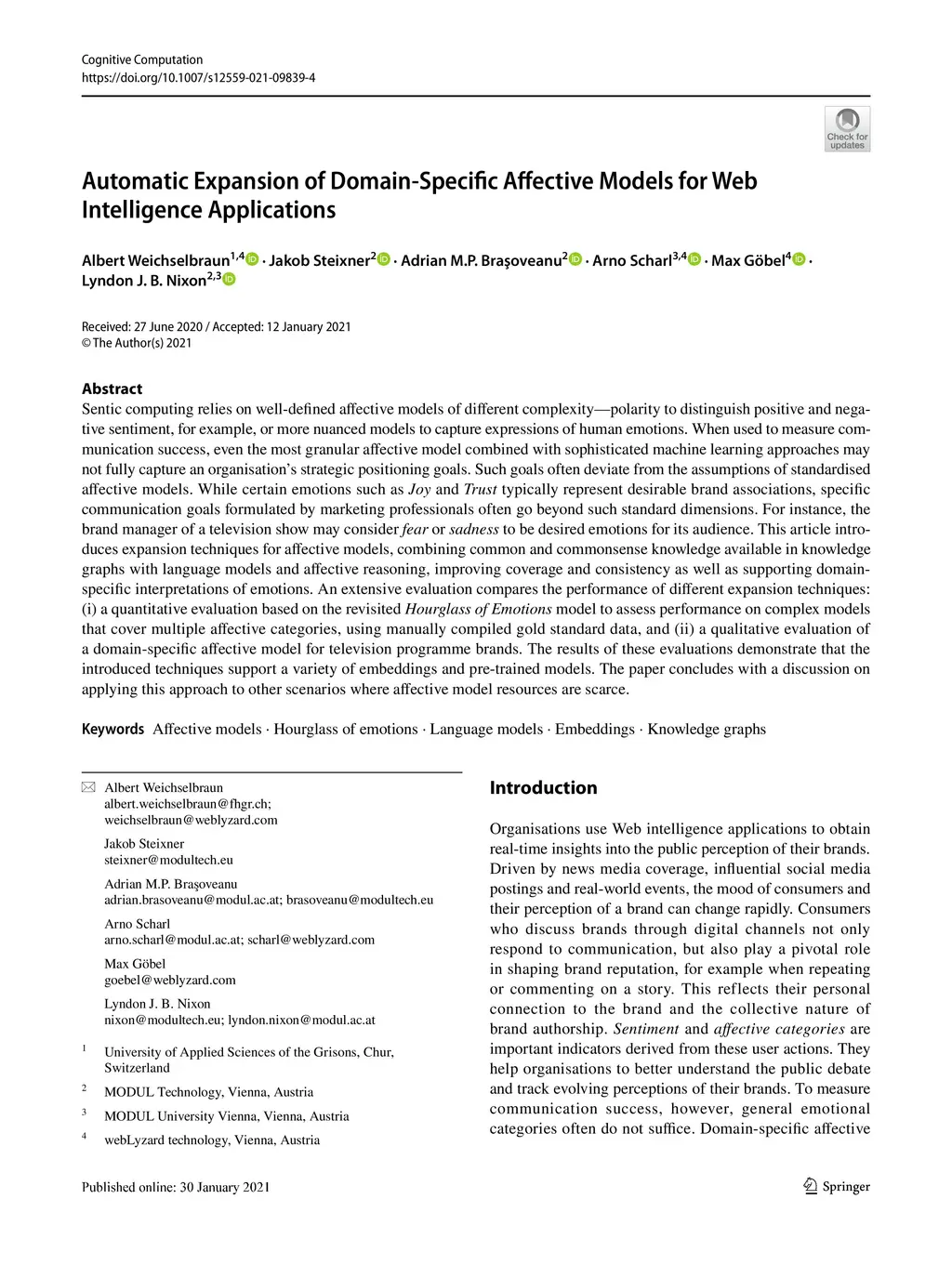 Automatic Expansion of Domain-Specific Affective Models for Web