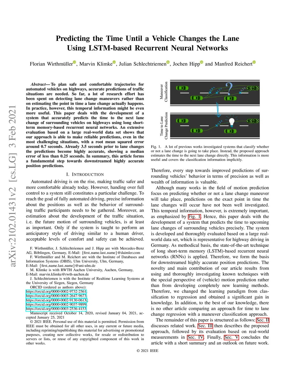 Predicting the Time Until a Vehicle Changes the Lane Using LSTM-based