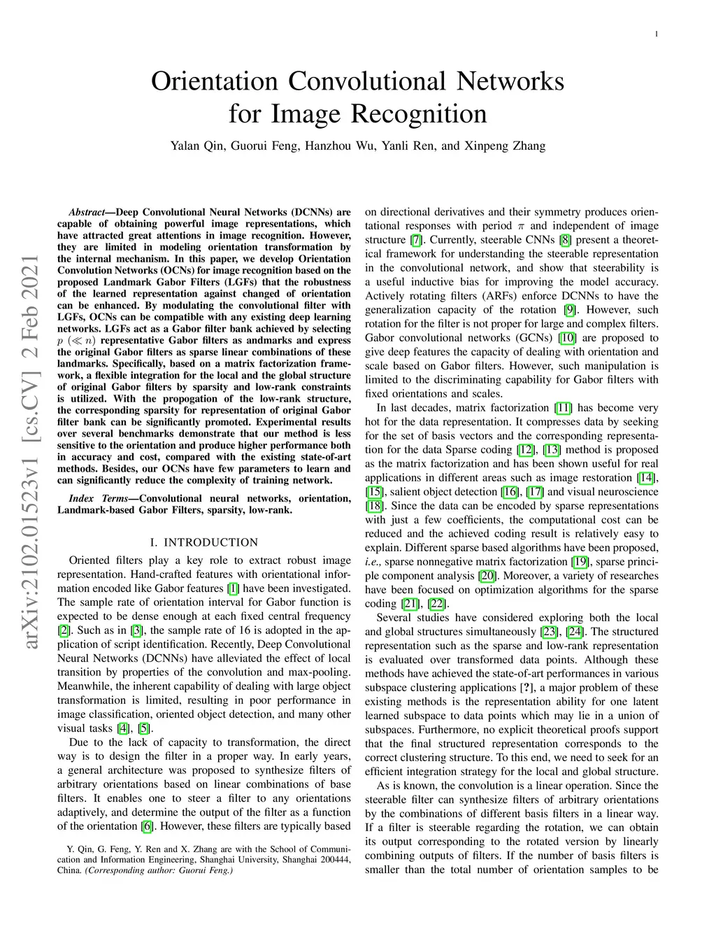 Deep Convolutional Neural Networks (DCNNs) are capable of obtaining powerful image representations, which have attracted great attentions in image recognition. However, they are limited in modeling orientation transformation by the internal mechanism. In this paper, we develop Orientation Convolution Networks (OCNs) for image recognition based on the proposed Landmark Gabor Filters (LGFs) that the robustness of the learned representation against changed of orientation can be enhanced. By modulating the convolutional filter with LGFs, OCNs can be compatible with any existing deep learning networks. LGFs act as a Gabor filter bank achieved by selecting $ p $ $ \left( \ll n\right) $ representative Gabor filters as andmarks and express the original Gabor filters as sparse linear combinations of these landmarks. Specifically, based on a matrix factorization framework, a flexible integration for the local and the global structure of original Gabor filters by sparsity and low-rank constraints is utilized. With the propogation of the low-rank structure, the corresponding sparsity for representation of original Gabor filter bank can be significantly promoted. Experimental results over several benchmarks demonstrate that our method is less sensitive to the orientation and produce higher performance both in accuracy and cost, compared with the existing state-of-art methods. Besides, our OCNs have few parameters to learn and can significantly reduce the complexity of training network.
