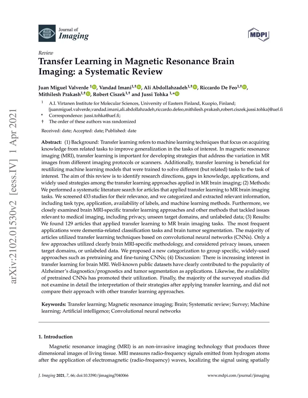 Transfer Learning in Magnetic Resonance Brain Imaging: a Systematic