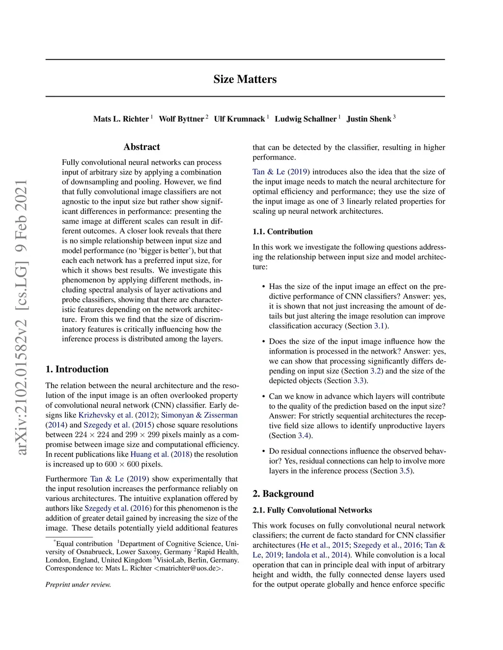 Fully convolutional neural networks can process input of arbitrary size by applying a combination of downsampling and pooling. However, we find that fully convolutional image classifiers are not agnostic to the input size but rather show significant differences in performance: presenting the same image at different scales can result in different outcomes. A closer look reveals that there is no simple relationship between input size and model performance (no `bigger is better'), but that each each network has a preferred input size, for which it shows best results. We investigate this phenomenon by applying different methods, including spectral analysis of layer activations and probe classifiers, showing that there are characteristic features depending on the network architecture. From this we find that the size of discriminatory features is critically influencing how the inference process is distributed among the layers.