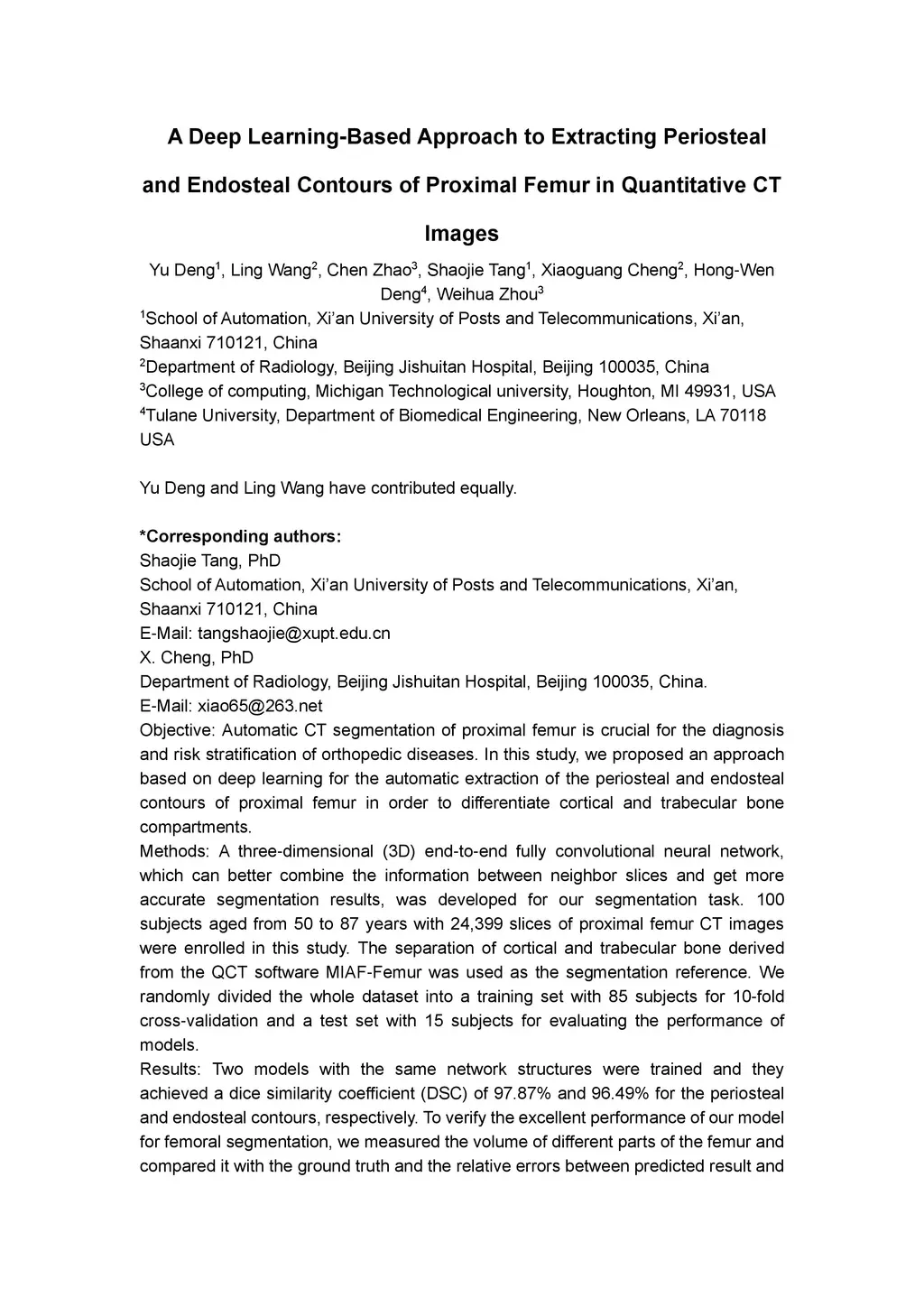 A Deep Learning-Based Approach to Extracting Periosteal and Endosteal