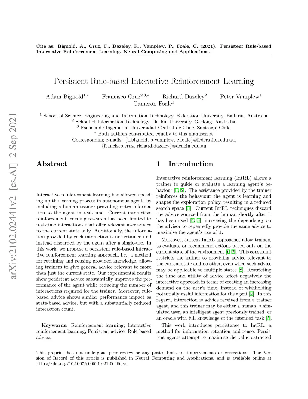 Persistent Rule-based Interactive Reinforcement Learning