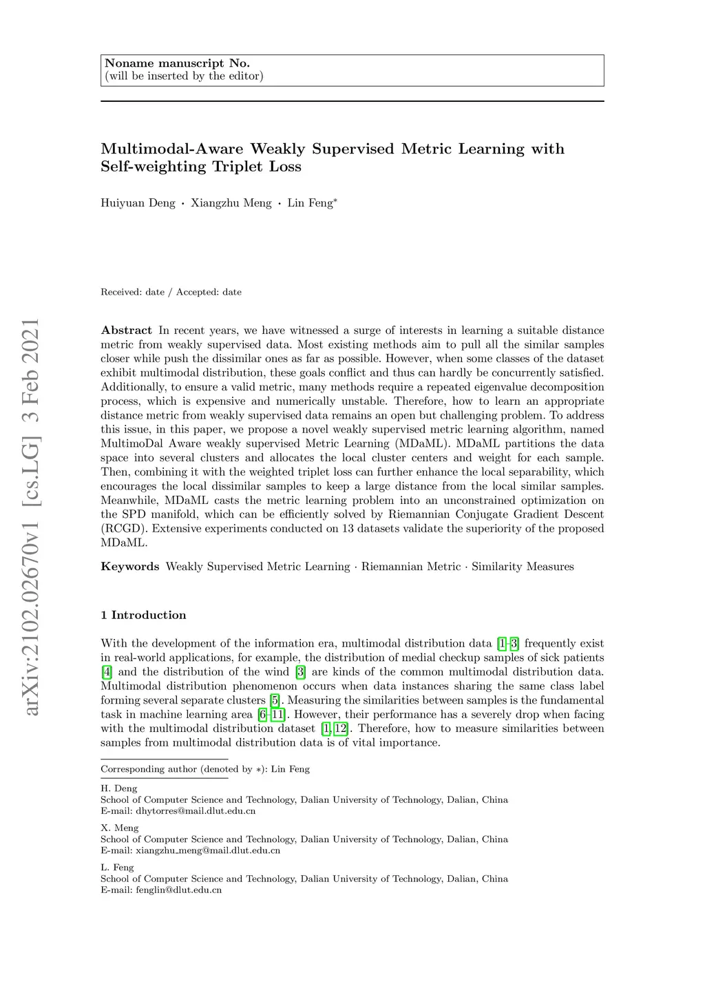 Multimodal-Aware Weakly Supervised Metric Learning with Self-weighting