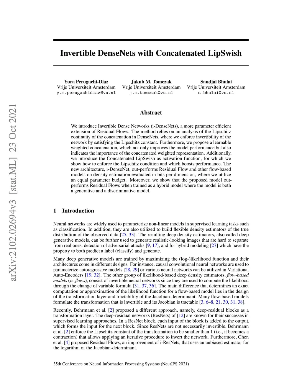 Invertible DenseNets with Concatenated LipSwish
