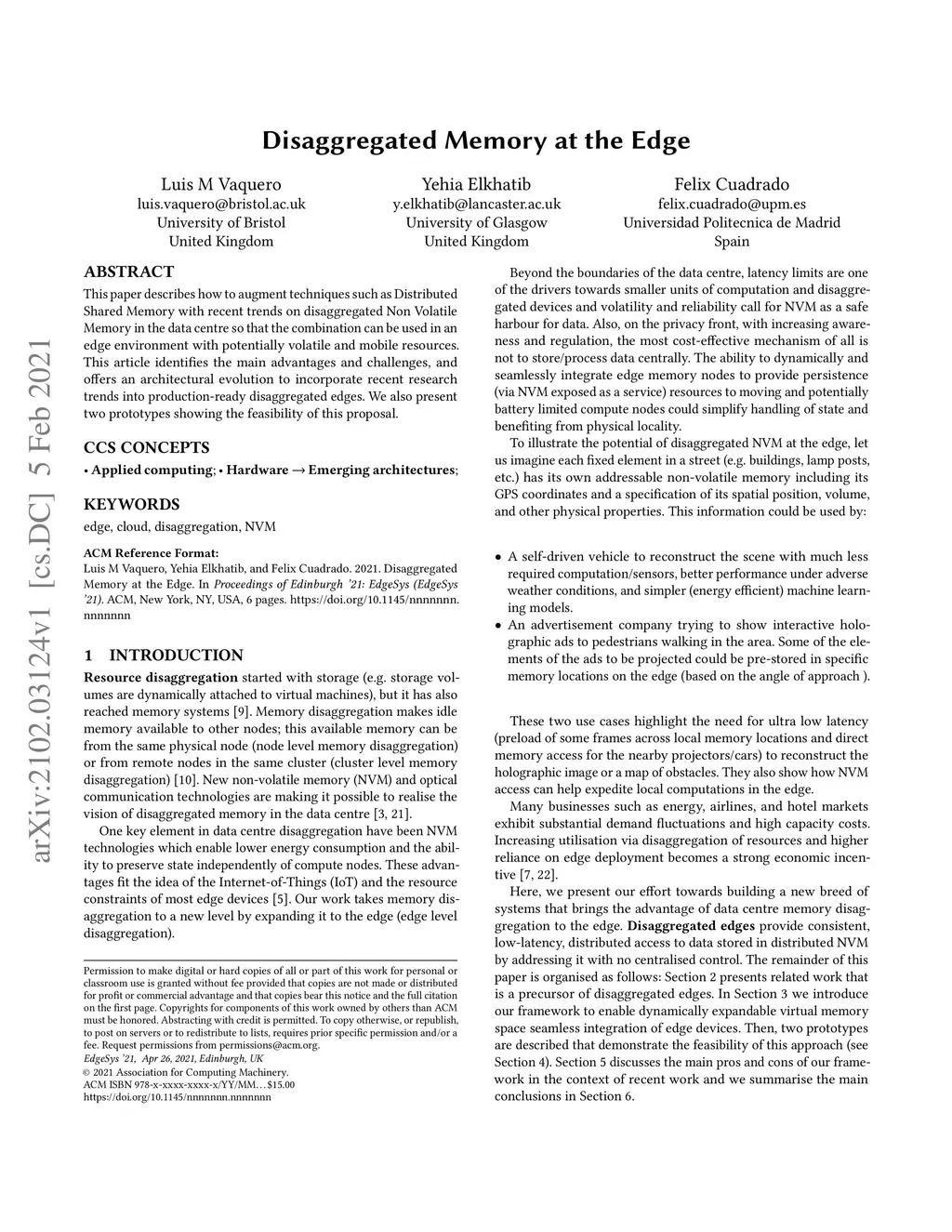 Disaggregated Memory at the Edge