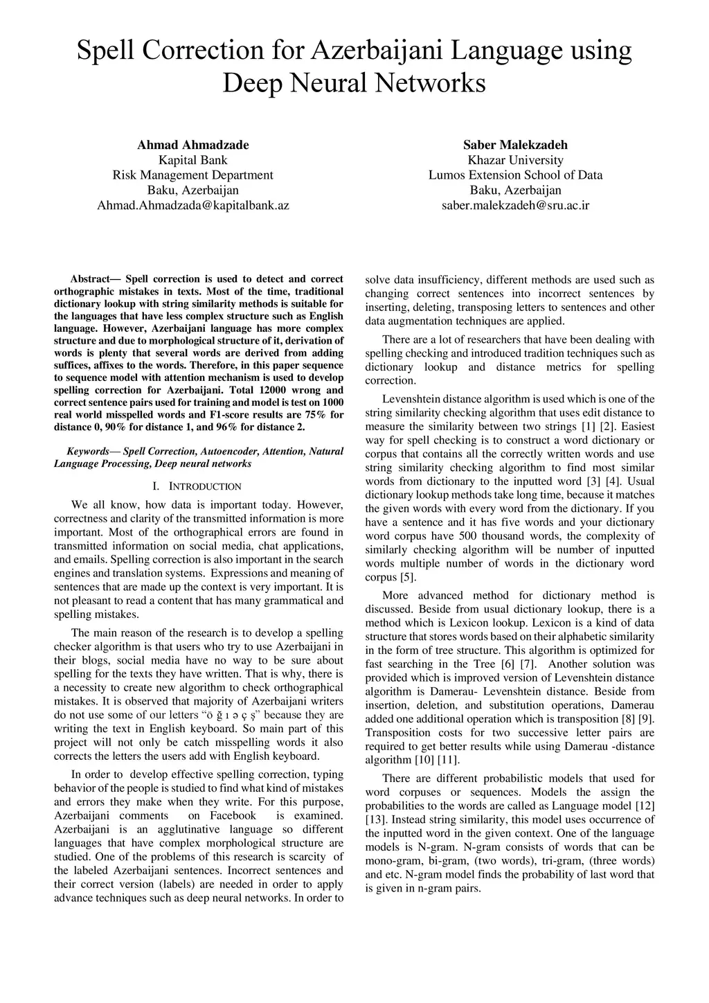 Spell Correction for Azerbaijani Language using Deep Neural Networks