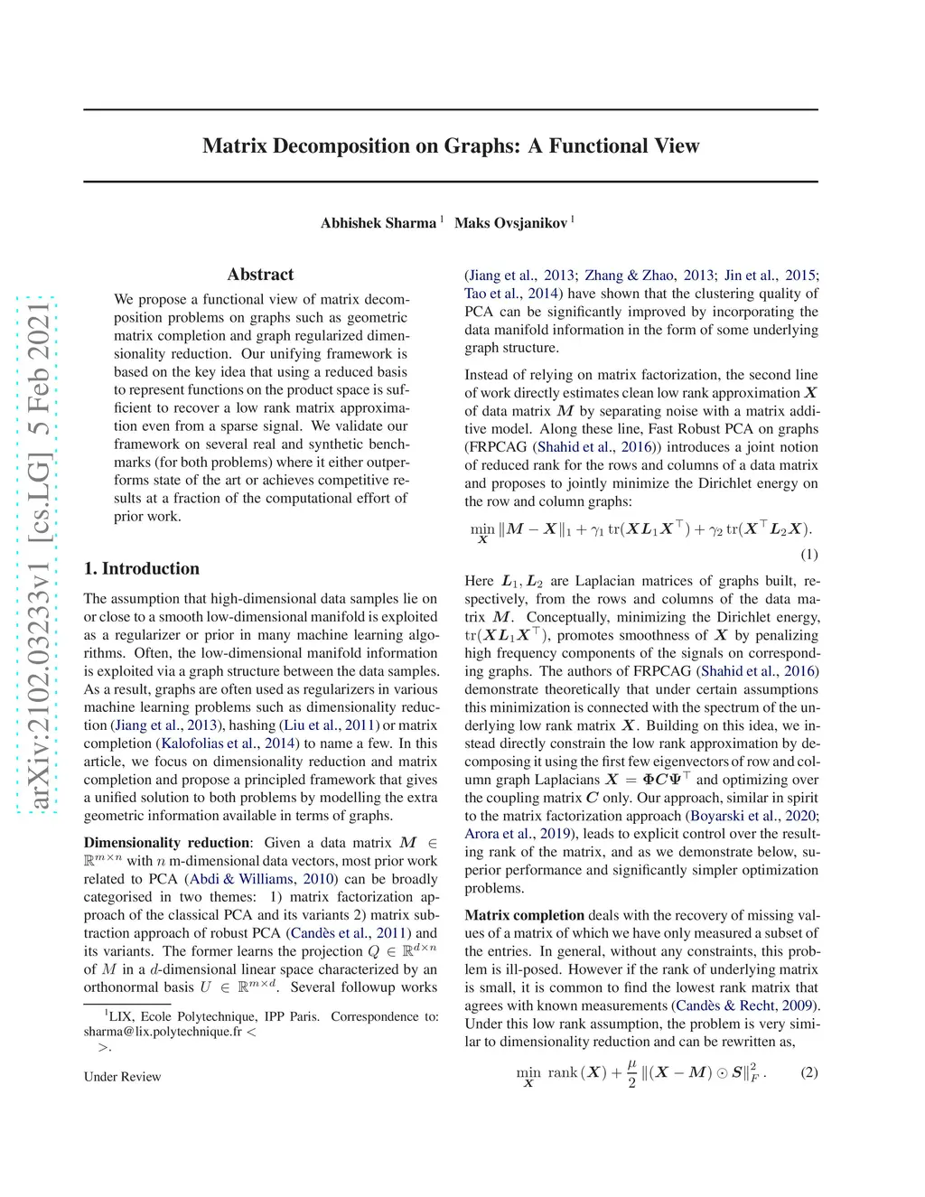 Matrix Decomposition on Graphs: A Functional View