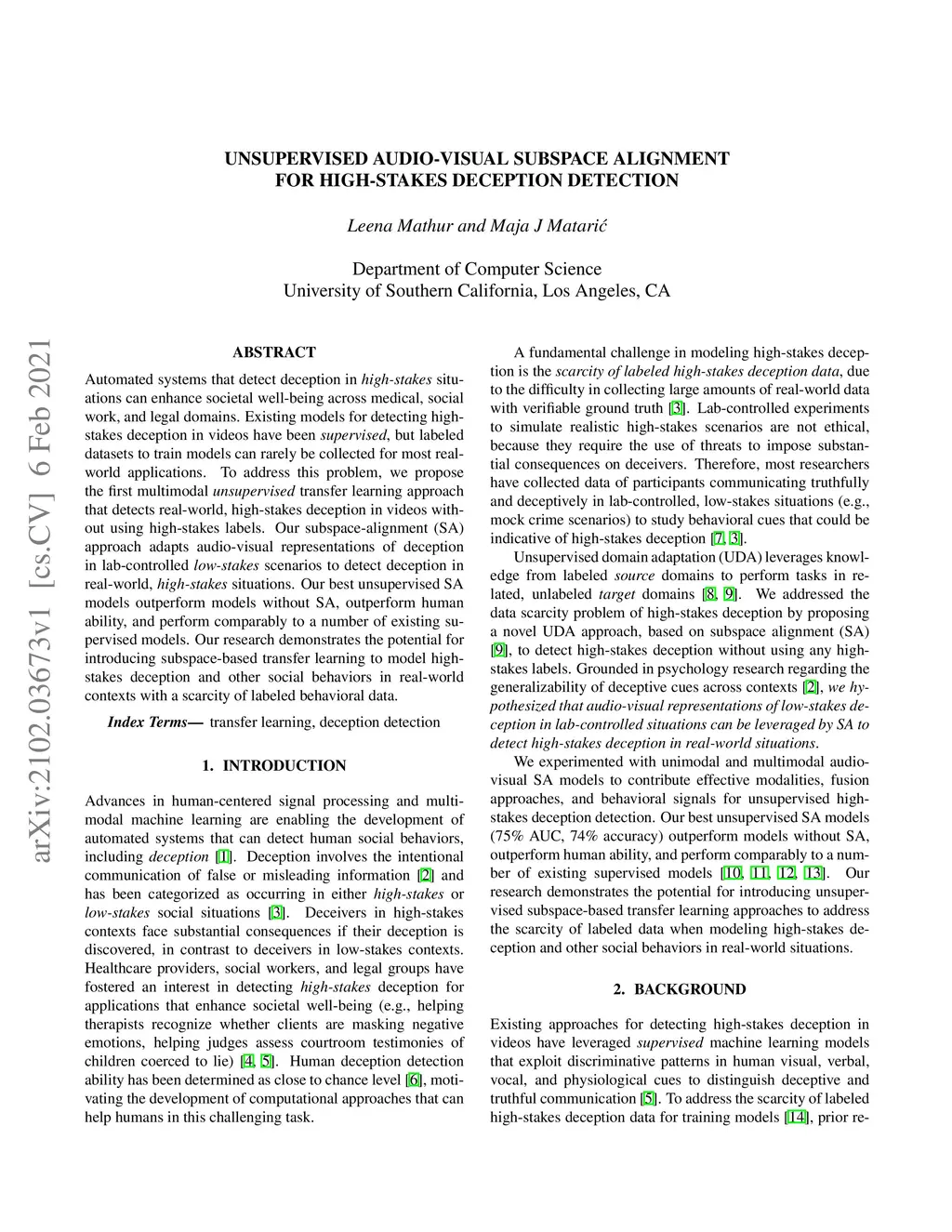 Unsupervised Audio-Visual Subspace Alignment for High-Stakes Deception