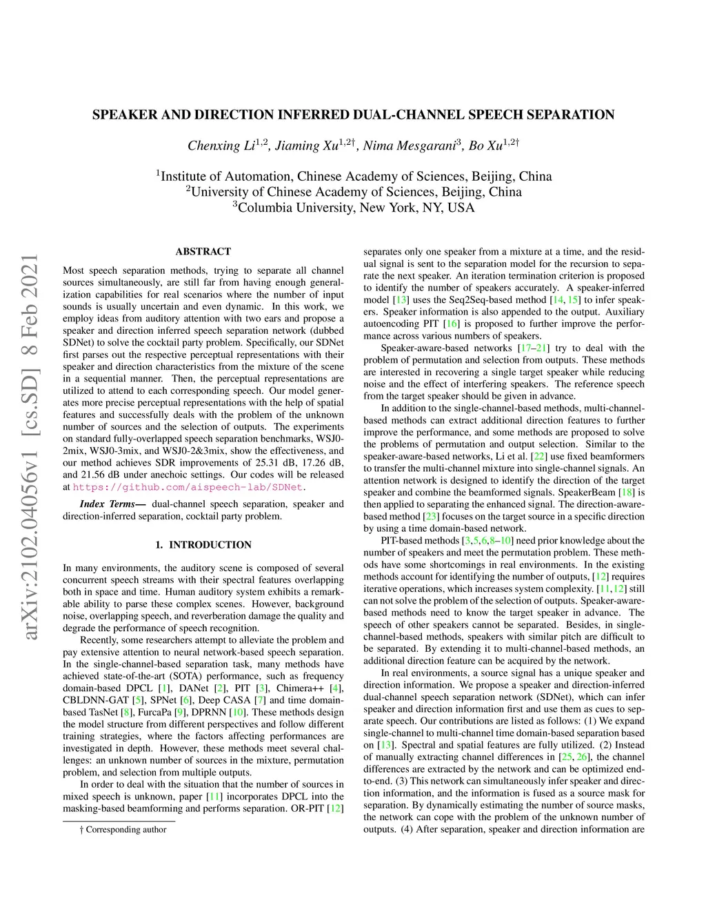 Speaker and Direction Inferred Dual-channel Speech Separation