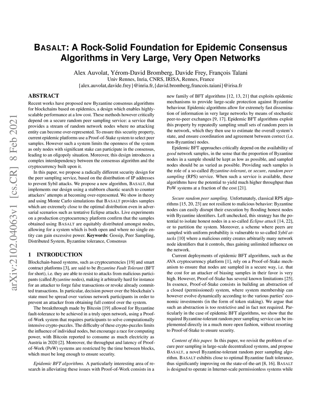 Recent works have proposed new Byzantine consensus algorithms for blockchains based on epidemics, a design which enables highly scalable performance at a low cost. These methods however critically depend on a secure random peer sampling service: a service that provides a stream of random network nodes where no attacking entity can become over-represented. To ensure this security property, current epidemic platforms use a Proof-of-Stake system to select peer samples. However such a system limits the openness of the system as only nodes with significant stake can participate in the consensus, leading to an oligopoly situation. Moreover, this design introduces a complex interdependency between the consensus algorithm and the cryptocurrency built upon it. In this paper, we propose a radically different security design for the peer sampling service, based on the distribution of IP addresses to prevent Sybil attacks. We propose a new algorithm, , that implements our design using a stubborn chaotic search to counter attackers' attempts at becoming over-represented. We show in theory and using Monte Carlo simulations that provides samples which are extremely close to the optimal distribution even in adversarial scenarios such as tentative Eclipse attacks. Live experiments on a production cryptocurrency platform confirm that the samples obtained using are equitably distributed amongst nodes, allowing for a system which is both open and where no single entity can gain excessive power.
