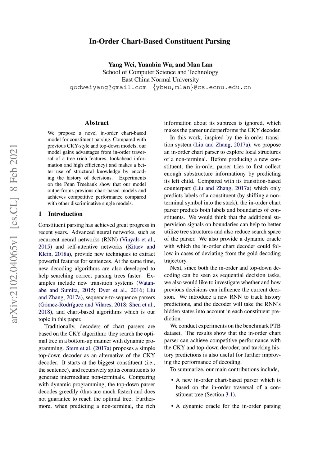 In-Order Chart-Based Constituent Parsing