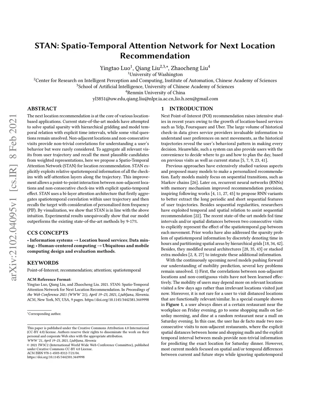 STAN: Spatio-Temporal Attention Network for Next Location Recommendation