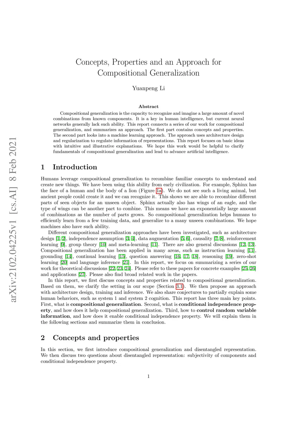 Concepts, Properties and an Approach for Compositional Generalization