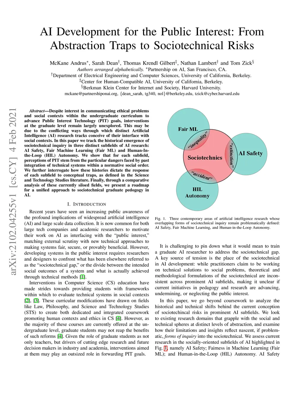 Despite interest in communicating ethical problems and social contexts within the undergraduate curriculum to advance Public Interest Technology (PIT) goals, interventions at the graduate level remain largely unexplored. This may be due to the conflicting ways through which distinct Artificial Intelligence (AI) research tracks conceive of their interface with social contexts. In this paper we track the historical emergence of sociotechnical inquiry in three distinct subfields of AI research: AI Safety, Fair Machine Learning (Fair ML) and Human-in-the-Loop (HIL) Autonomy. We show that for each subfield, perceptions of PIT stem from the particular dangers faced by past integration of technical systems within a normative social order. We further interrogate how these histories dictate the response of each subfield to conceptual traps, as defined in the Science and Technology Studies literature. Finally, through a comparative analysis of these currently siloed fields, we present a roadmap for a unified approach to sociotechnical graduate pedagogy in AI.