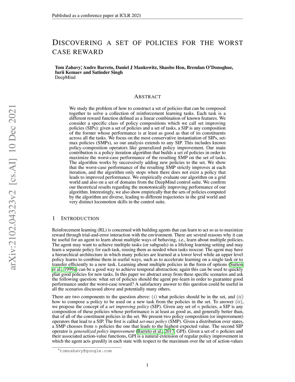 We study the problem of how to construct a set of policies that can be composed together to solve a collection of reinforcement learning tasks. Each task is a different reward function defined as a linear combination of known features. We consider a specific class of policy compositions which we call set improving policies (SIPs): given a set of policies and a set of tasks, a SIP is any composition of the former whose performance is at least as good as that of its constituents across all the tasks. We focus on the most conservative instantiation of SIPs, set-max policies (SMPs), so our analysis extends to any SIP. This includes known policy-composition operators like generalized policy improvement. Our main contribution is a policy iteration algorithm that builds a set of policies in order to maximize the worst-case performance of the resulting SMP on the set of tasks. The algorithm works by successively adding new policies to the set. We show that the worst-case performance of the resulting SMP strictly improves at each iteration, and the algorithm only stops when there does not exist a policy that leads to improved performance. We empirically evaluate our algorithm on a grid world and also on a set of domains from the DeepMind control suite. We confirm our theoretical results regarding the monotonically improving performance of our algorithm. Interestingly, we also show empirically that the sets of policies computed by the algorithm are diverse, leading to different trajectories in the grid world and very distinct locomotion skills in the control suite.